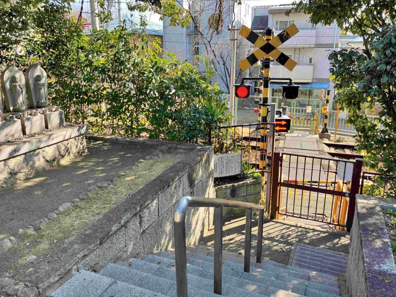 | 阪急御影駅から東へ徒歩3分、墓地専用踏切があるユニークな墓地。車利用時は近くのコインパーキングを利用します。 |