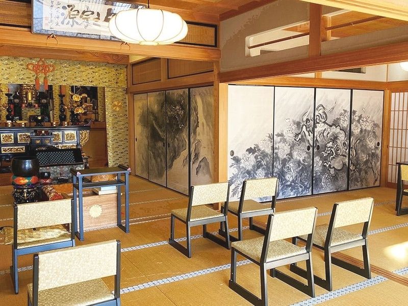 萬松院の本堂は、回忌法要やその他の宗教行事を行うための施設として完備されています。椅子席が用意されているため、年配の方々や身体の不自由な方でも快適に法事に参加することができます。また、美しい龍の襖絵が描かれた本堂は、精神的な充足感を与え、萬松院での法事がより印象深いものとなります。