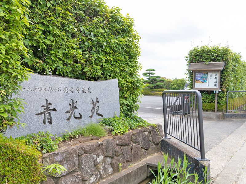 おすすめ!青光苑樹木葬は、埼玉県越谷市にある寺院墓地です。光善寺の境内にある樹木葬墓地は、青いガラスのモニュメントが目印となっています。藤棚の下に造られた独創的な樹木葬区画は、藤の花が咲くと芳醇な甘い香りに包まれます。近くにコンビニや和菓子屋があるため、お供え物や忘れ物は現地調達可能です。周りは田畑に囲まれていますが、中学校・高校もすぐそばにあるため、静かすぎず故人も寂しくなりません。