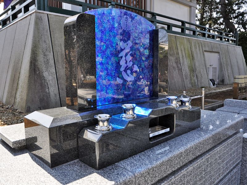 おすすめ!広大な敷地を持つ普門院の境内にある永代供養墓です。約600年の歴史を持つ境内には多くの見どころがあり、四季の花木を楽しみながら散策ができます。また、野鳥が訪れるほど緑が多く、季節ごとにたくさんの鳥の鳴き声が聞こえます。「いつくしみ」は瑠璃色に輝く墓石を中心にした、後継者不要・永代供養付きのお墓です。1~5名まで使用でき、普門院により手厚い供養が受けられます。