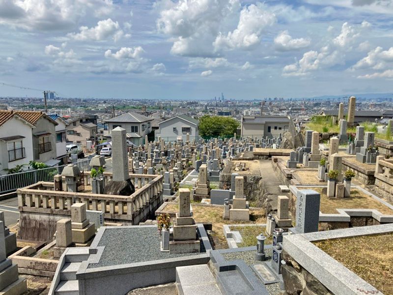 おすすめ!大阪府東大阪市にある共同墓地です。敷地が広く、墓地全体が坂になっているため、墓域から市内を一望できます。観音像が見守る静かな場所で、ゆっくりとお墓参りができます。3台分の参拝者専用駐車場があり、入り口には管理事務所があります。水汲み場やバケツ・柄杓の貸し出しもあり、道具を持参する必要はありません。近くには六万寺古墳がいくつかあり、歴史を感じさせる土地です。