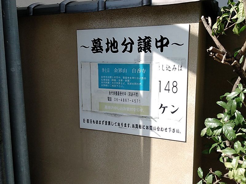 おすすめ!浄土宗の自香寺が管理をしている寺院墓地です。 繁華街である梅田にほど近い場所ですが、静かで穏やかな時間が流れています。 蓮の花やきんもくせいなど、四季折々の花が訪れる方の目を楽しませてくれる安らぎの空間です。 墓域はコンパクトで、女性一人でも安心してゆっくりと故人に手を合わせられます。 アクセスの良い好立地にあるので、お墓から足が遠のいてしまうこともないでしょう。